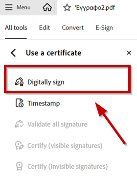 - Ανοίγετε το έγγραφο pdf το οποίο επιθυμείτε να υπογράψετε.