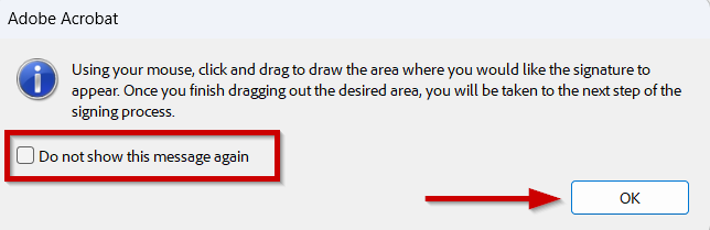 Εμφανίζεται μήνυμα για τον τρόπο που θα χρησιμοποιήσετε το ποντίκι για να θέσετε το πλαίσιο της υπογραφής. Μπορείτε να τσεκάρετε το εικονίδιο ώστε να μην εμφανίζεται πλέον αυτό το μήνυμα.