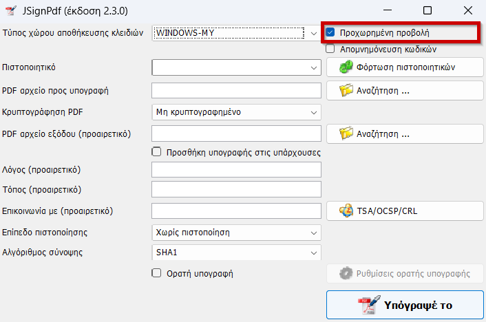 Σε κάθε ένα από τα παραπάνω λογισμικά χρειάζεται να γίνουν κάποιες ρυθμίσεις ώστε να μπορεί να υπογραφεί ένα αρχείο.