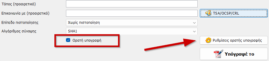 Τότε πλέον μπορείτε κι επιλέγετε Ρυθμίσεις ορατής υπογραφής.