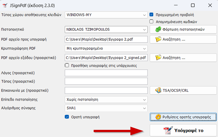 Με ενημερωμένη πλέον και τη θέση της υπογραφής επιλέγετε Υπόγραψέ το.
