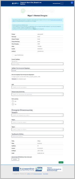 Βασικά Στοιχεία - ταυτοτικά, επικοινωνίας, συνοικούντες, δυνατότητα φιλοξενίας |
